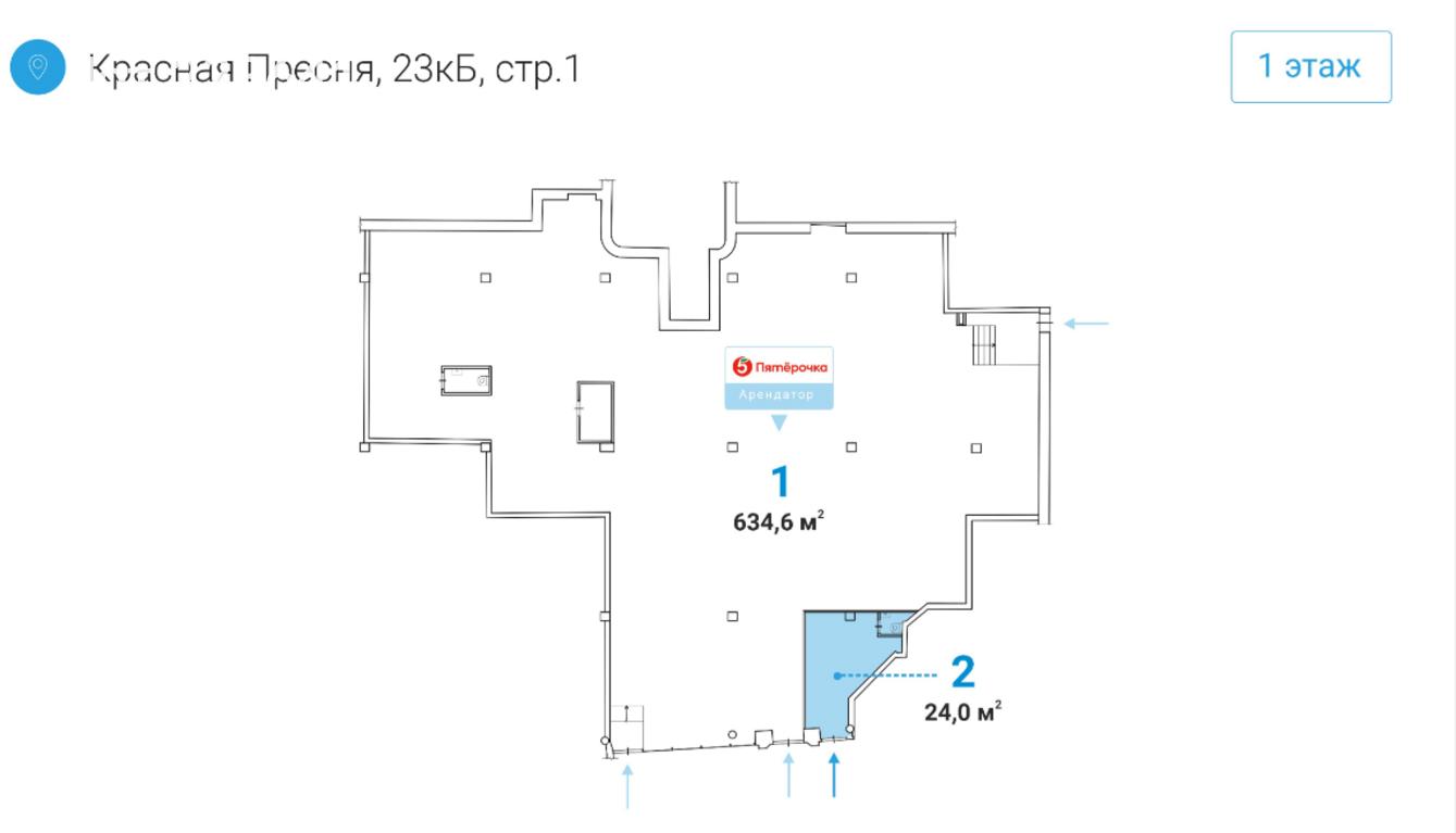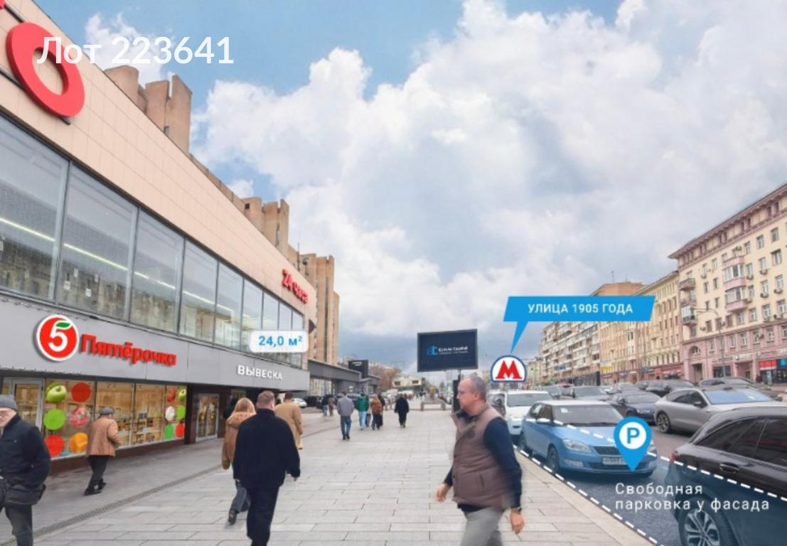 Лот № 223641 Предлагается в аренду коммерческое помещение, расположенное по адресу: улица Красная Пресня, Центральный административный округ, город Москва. Объект находится в непосредственной близости от станции метро «Улица 1905 года», до которой можно добраться пешком за 5 минут. Помещение характеризуется высокой пешеходной и транспортной доступностью, что делает его привлекательным для различных видов коммерческой деятельности.Объект обладает значительным рекламным потенциалом и возможностью размещения рекламных вывесок на фасаде здания, что способствует эффективному привлечению потенциальных клиентов.